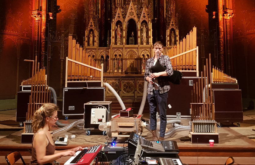 Instrumentarium: Orgue Silbermann, Organous (orgue spatialisé et piloté par ordinateur), cornemuses, violon baroque, et toutes sortes d’autres instruments selon la saison.